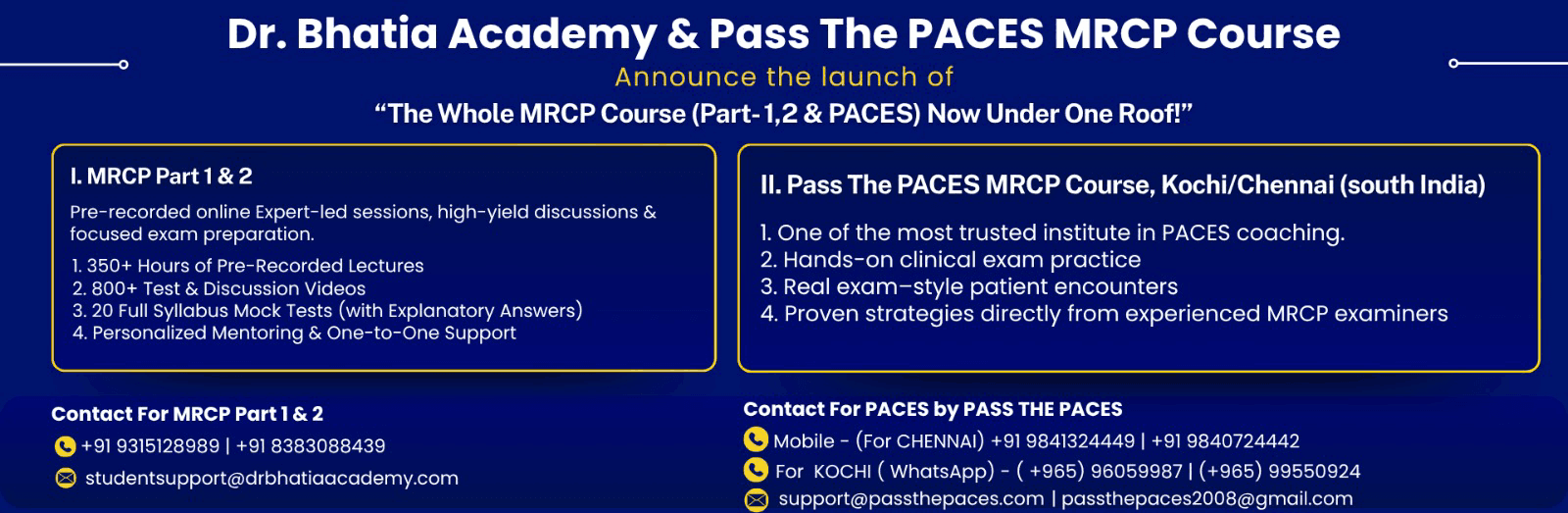 In addition to his work in India, Dr. Bhatia has expanded his educational reach by offering specialized courses for international exams like the MRCP (UK) and USMLE (USA), MRCP, NEET SS, Smart Medicine, and PLAB, helping countless medical professionals achieve their goals of practicing medicine globally. His expert guidance and comprehensive courses have become a trusted resource for those aiming to excel in these challenging exams.